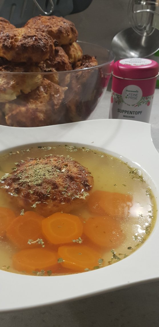 Kaspressknödel werden sehr gerne mit einer Klaren Suppe / Rindssuppe als Einlage gegessen!