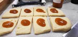 Buchteln mit Vanillesauce gebacken in der Stoneware