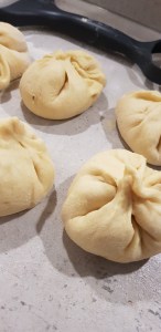 Buchteln mit Vanillesauce gebacken in der Stoneware