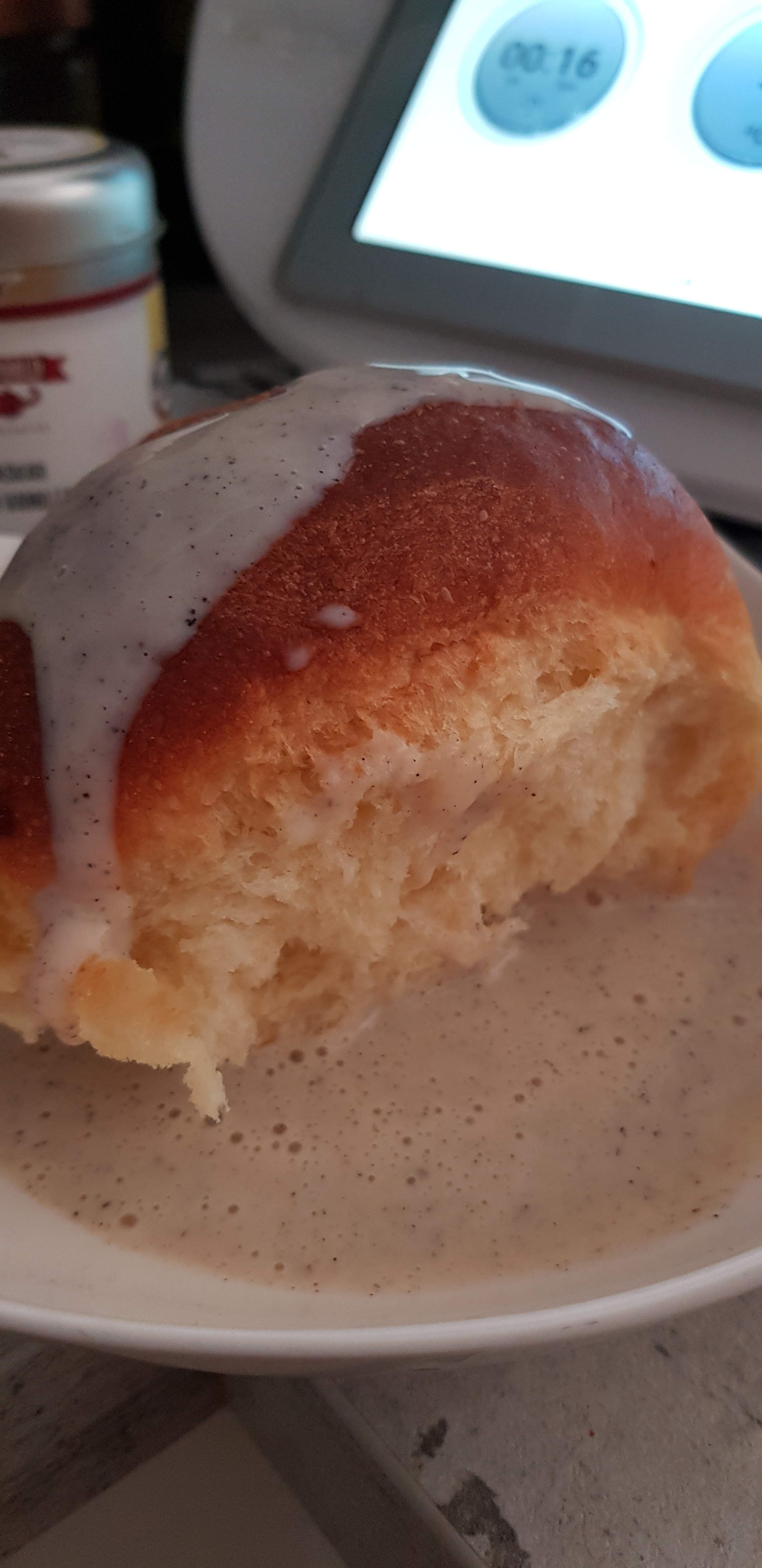 Buchteln mit Vanillesauce gebacken in der Stoneware