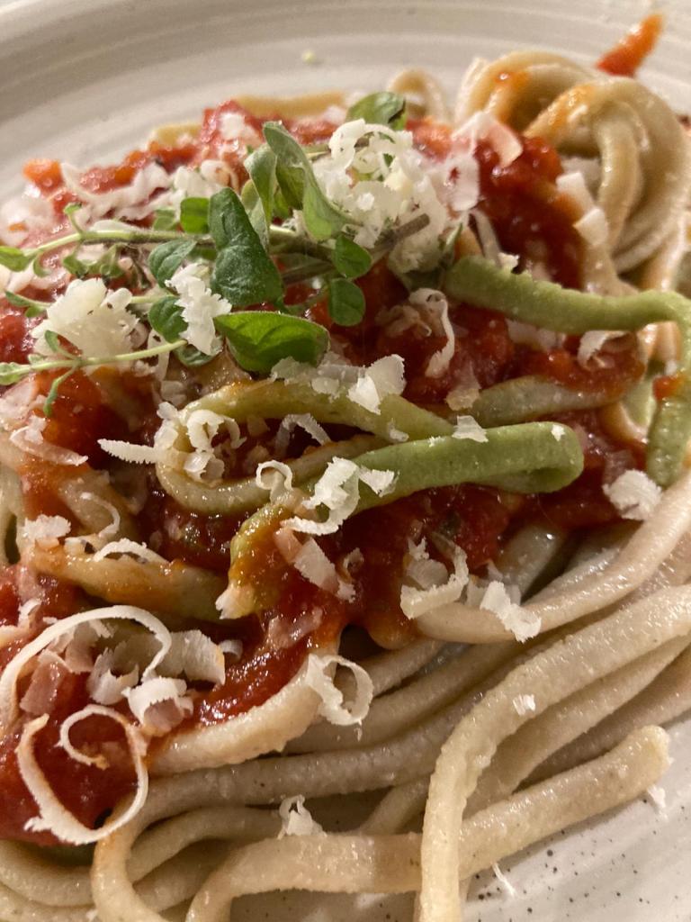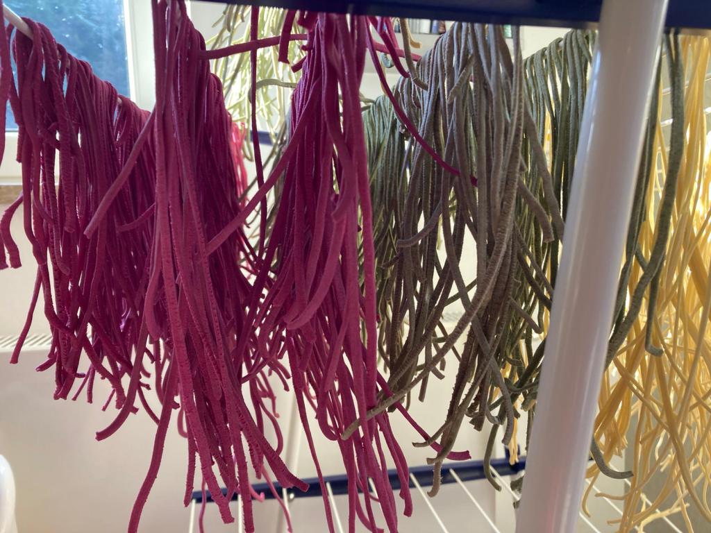 Den Pastateig habe ich im Thermomix zubereitet und anschließend in den Pastamaker gegeben.