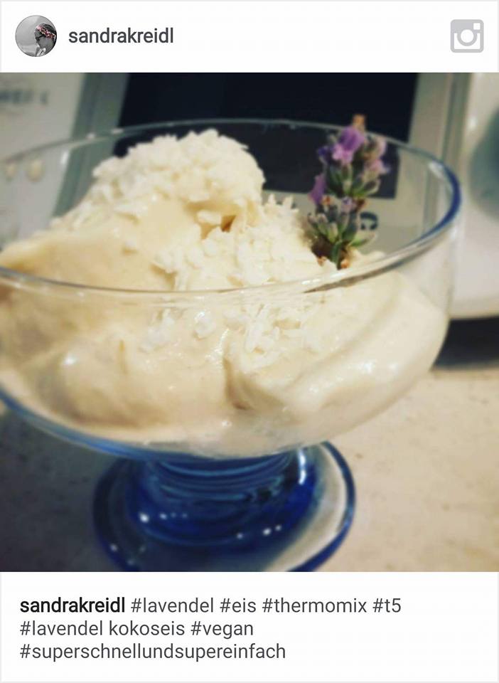 40-60g ZuckerPfefferminzblätter 300g Erdbeeren gefroren100g Kokosmilch Zucker und Pfefferminzblätter 10 Sekunden/ 10 pulverisieren. Gefrorenen Früchte hinzu und 10 Sekunden /8 zerkleinern, mit dem Spatel nach unten schieben, Kokosmilch hinzu und 10 Sekunden /4 vermischen. Schmetterling* einsetzen und 20 Sekunden/4 verrühren-sofort genießen. *durch das Einsetzen des Schmetterlings wird das Eis viel cremiger! Viel Freude beim Selbermachen …