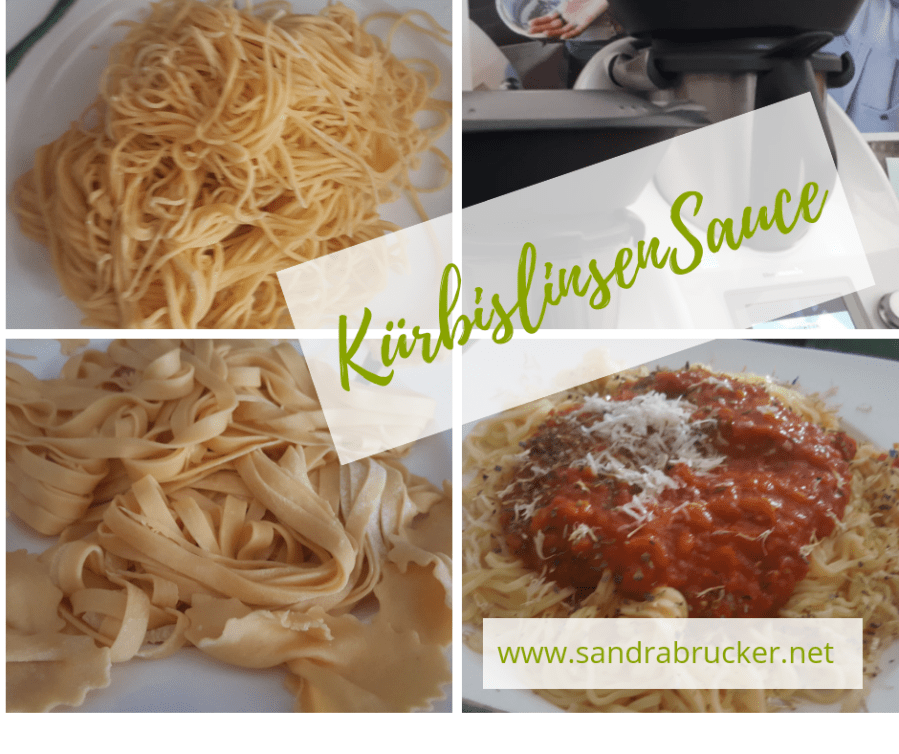 Zubereitung im Zauberkessel #Zubereitung Sauce 2 Stück Zwiebel halbiert 4 Knoblauchzehen 40g Olivenöl 500g Kürbisfleisch in groben Stücken 1 Dose gehackte Tomaten 200g rote Linsen 300g Wasser 2EL Majoran, gerebbelt 2TL Salz 1/2 TL Pfeffer 1/2 TL Honig oder Zucker #Zwiebel und Knoblauchzehen in den Mixtopf geben und 5Sek/5 zerkleinern, mit dem Spatel nach unten …